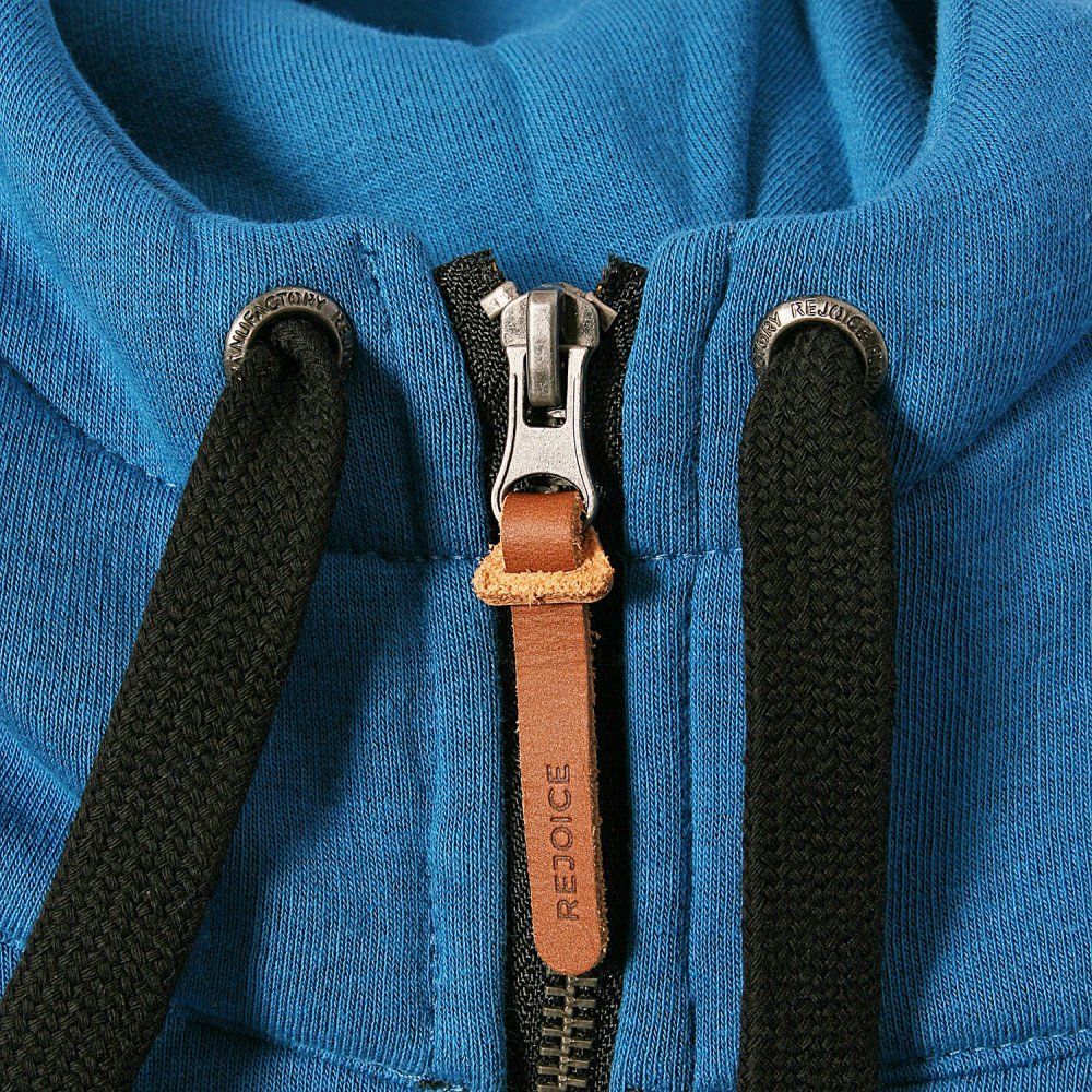 Na kapuci jsou kovové průchodky a mikina se zapíná na kvalitní zdrhovadlo YKK. Tento zip je všit s částečným krytím a vnitřní tkanice zipu je zapravena lemováním.