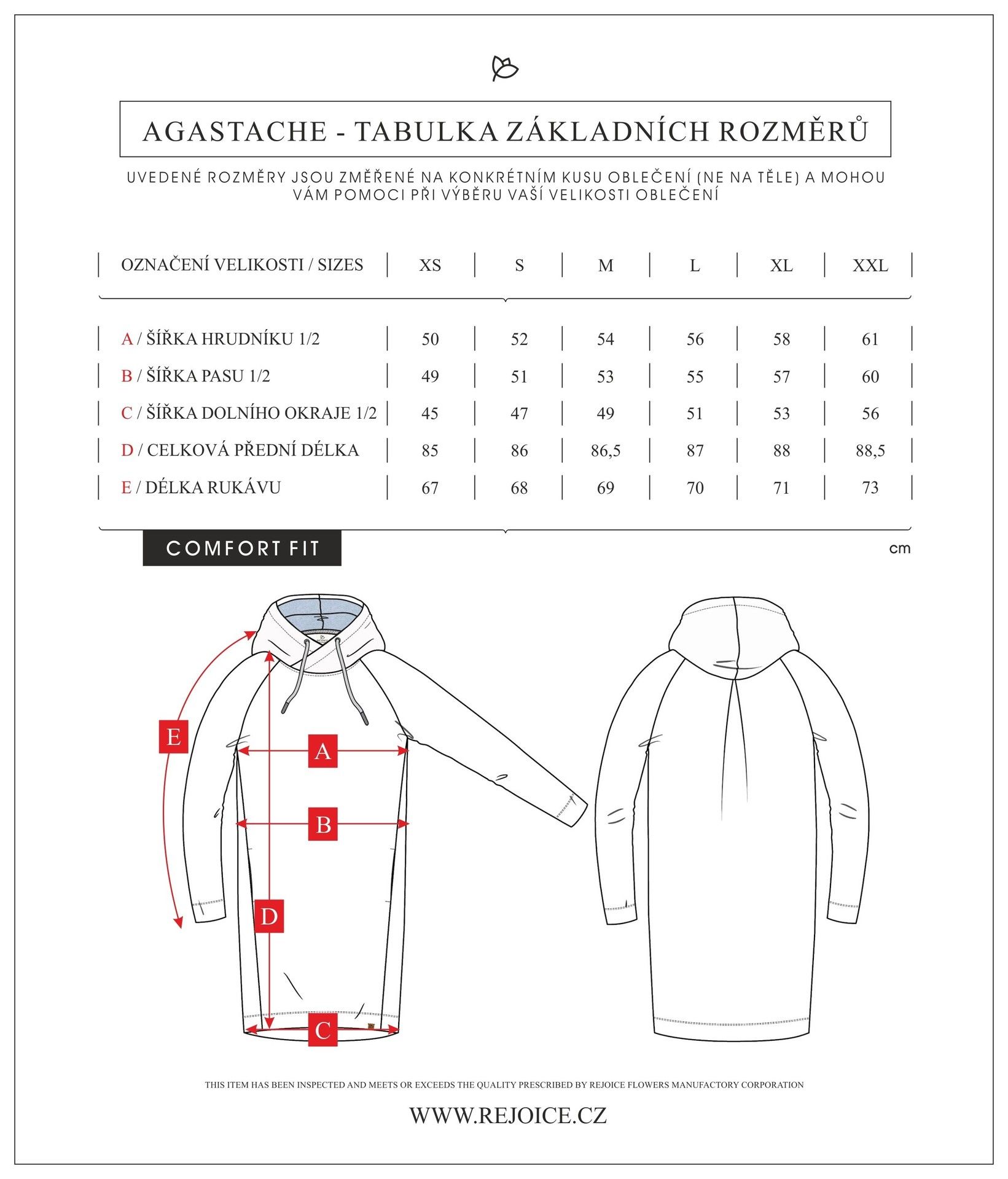 Rejoice: AGASTACHE mikinové šaty s kapucí, dvě přední kapsy, dlouhý úzký rukáv,