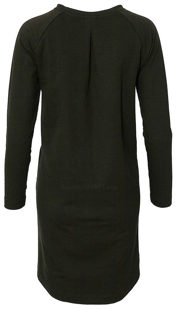Mikinové šaty s kapsami jsme ušili u nás na Vysočině, doplnili jsme je o koženou etiketku.