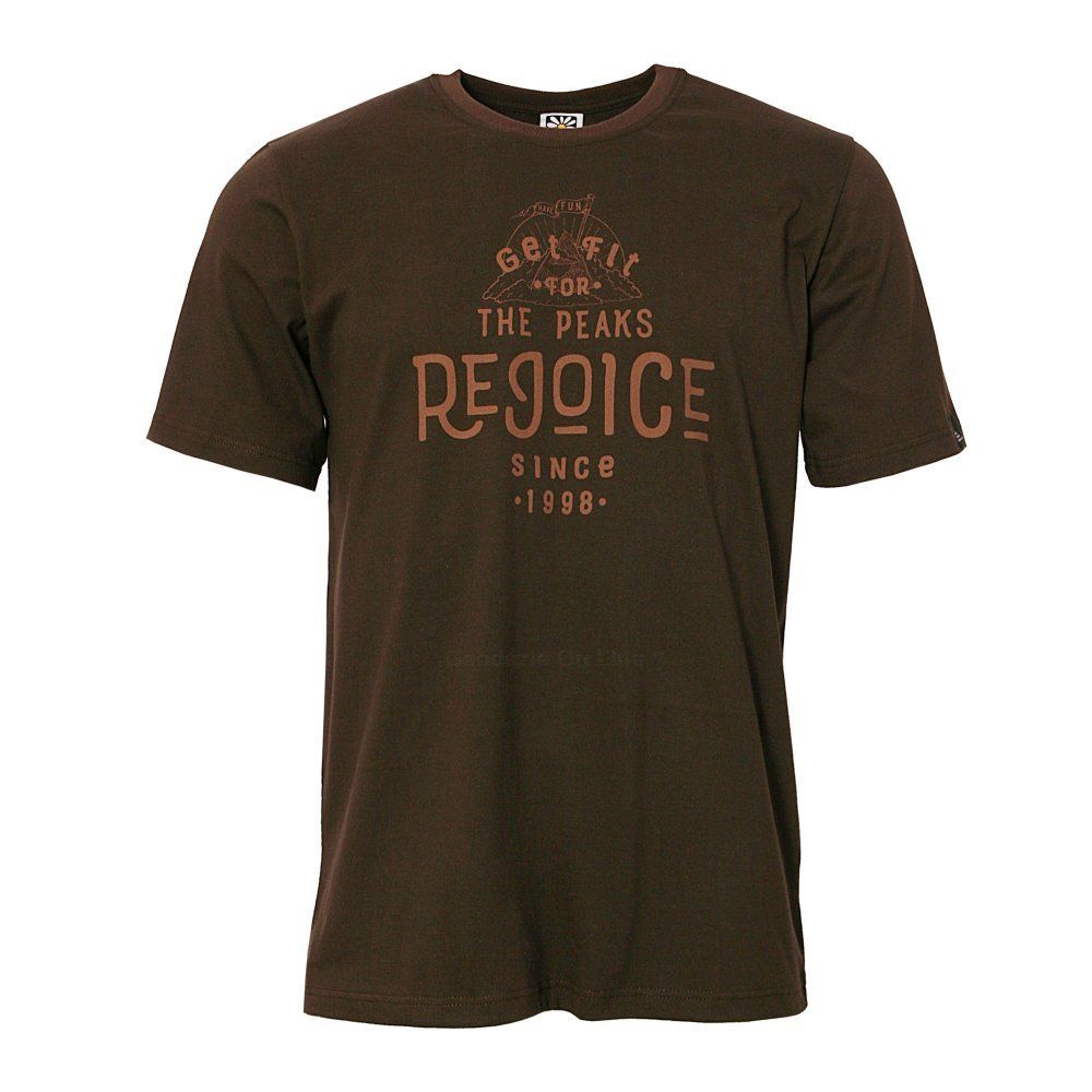 Originální grafika Rejoice dodává tričku jedinečný styl.