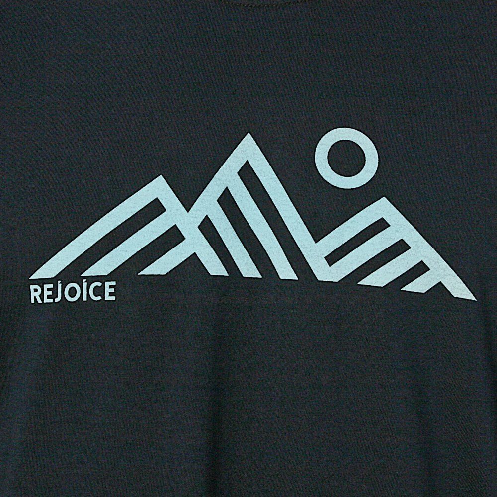 Originální grafika Rejoice dodává tričku jedinečný styl.