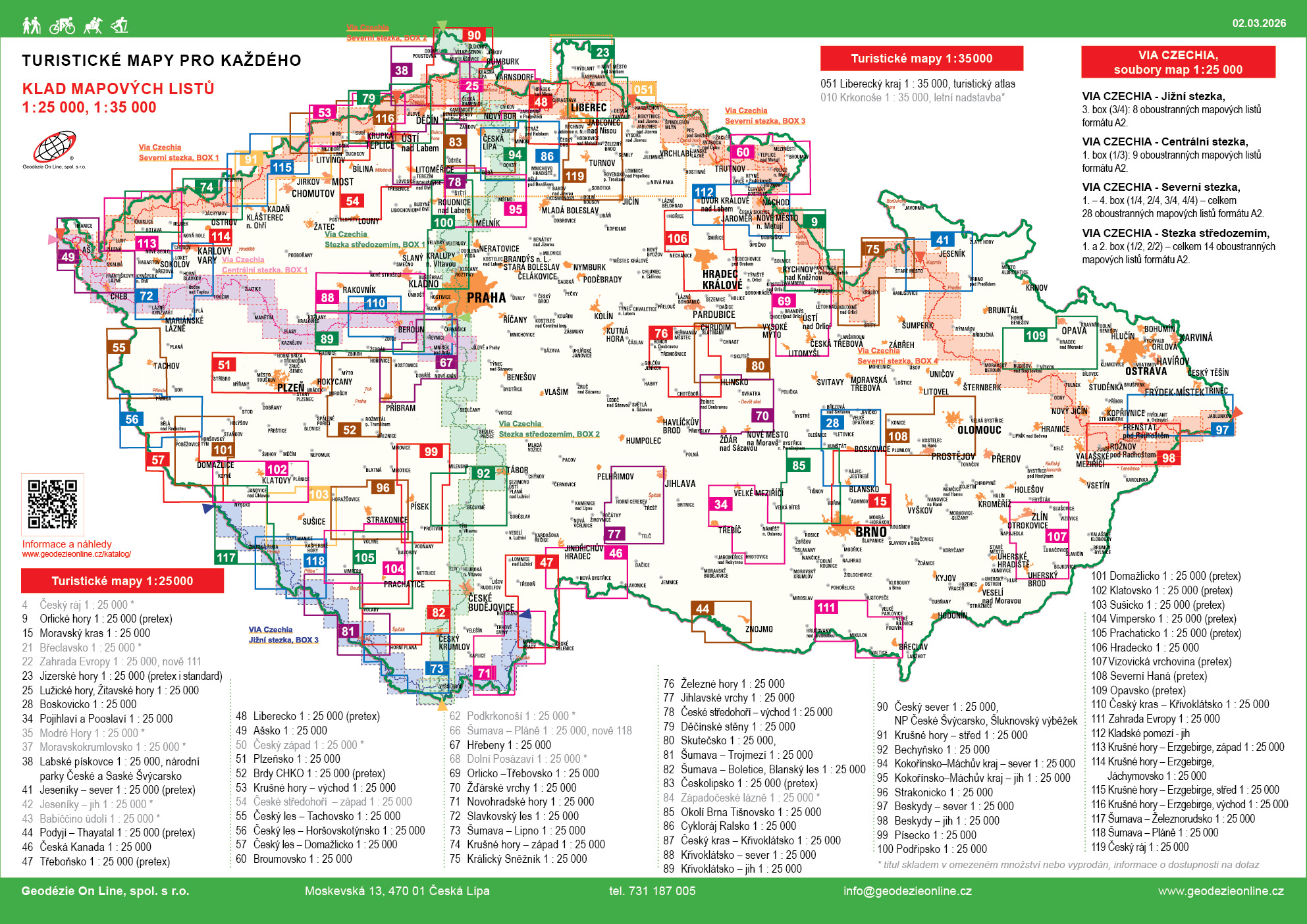 Mapy tiskneme na papír o velikosti 99,6x69,6 cm nebo 99,4x68,0 cm, skládáme na formát cca 18x11 cm a vkládáme do plastového obalu :-)